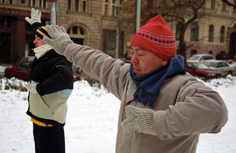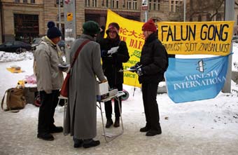 leur expliquant les principes du Falun Gong. L'atmosphère
