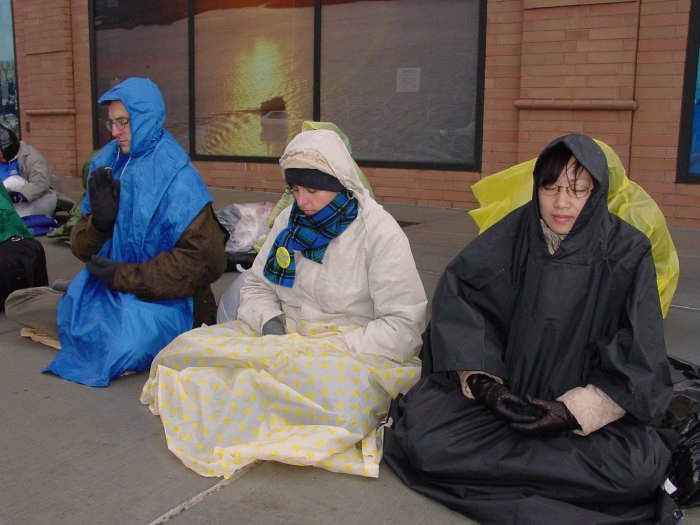 pleuvoir fortement. Les pratiquants ont envoyé des pensées