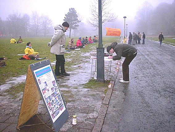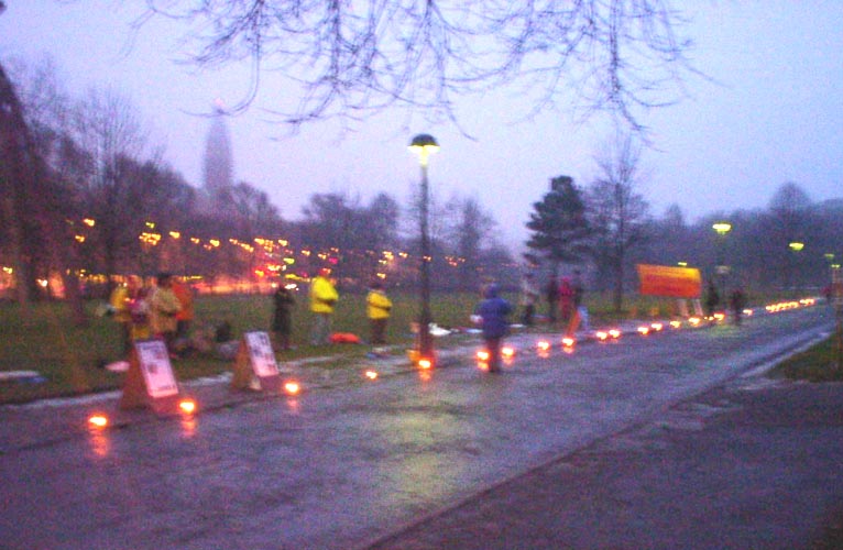 Goethborg, Suède : Les pratiquants font une vigile aux chandelles pour protester contre les dernières morts tragiques en Chine
