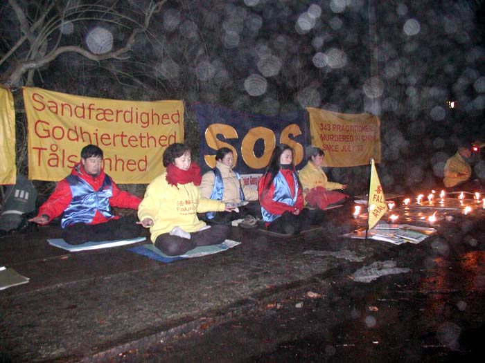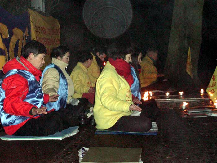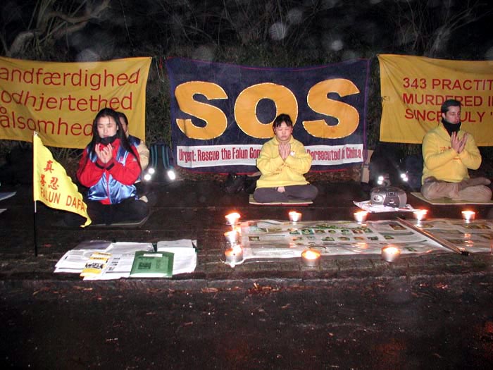 Les pratiquants Dannois font une vigile aux chandelles devant l'Ambasse de Chine