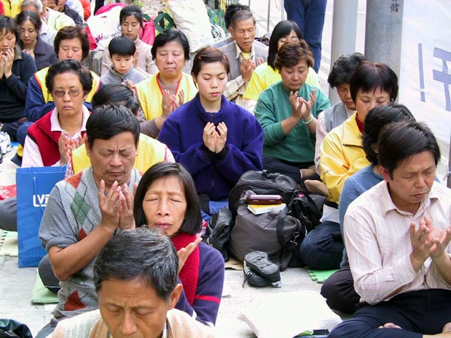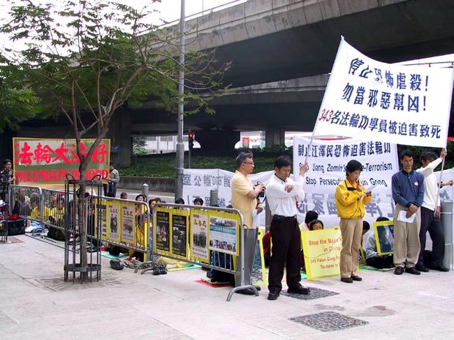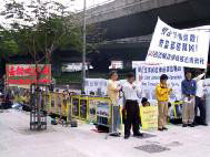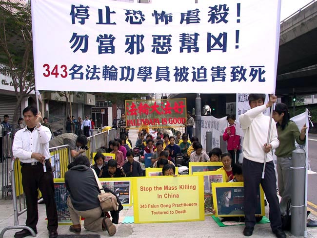 Les pratiquants de Hong Kong font un sit-in devant le bureau de liaison de la Chine pour rendre hommage à ceux qui ont perdu leur vie et pour condamner les meurtres brutaux des pratiquants du Dafa par le régime de Jiang