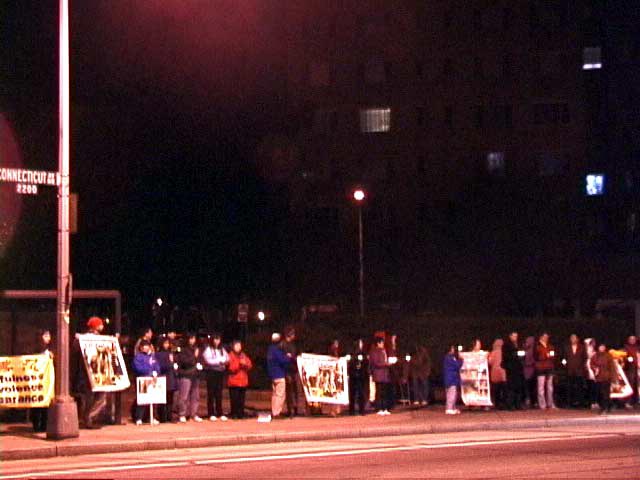 Les pratiquants de Washington DC font une conférence de presse et une vigile aux chandelles pour rendre hommage aux pratiquants assassinés par le régine de Jiang