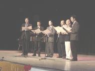 La premier spectacle de théâtre conjugué, en musique et dans les sphères de l’art, a été donné par des pratiquants; il a eu lieu à Tampa, en Floride, le 30 décembre 2001. Les pratiquants, en provenance de partout, en Amérique du Nord, ont interprété avec leurs talents variés différents domaines: musique d’orchestre, musique folklorique, vidéo et danse. Les pratiquants de Dafa ont préparé un programme varié pour le spectacle, louant l’immense compassion de notre grand Maître, démontrant la grandeur et les épreuves dans le processus de la rectification par la Loi et exposant la persécution brutale de la perversité contre les disciples du Dafa. Le programme révéla aussi les actions splendides accomplies par les pratiquants de la Chine et de l'étranger, en allant sur la Place Tian An Men, exprimer haut et fort : « Le Falun Dafa est bon! » Leurs voix voyageant à travers différent espaces-temps pour toucher toute les vies.