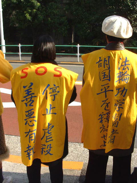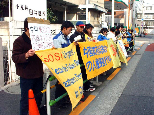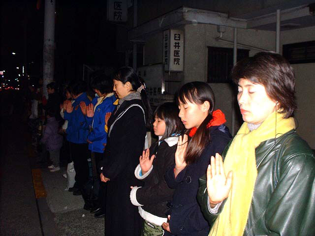 Les pratiquants japonais continuent leur vigile aux chandelles devant l'Ambassade de Chine le soir du 14 janvier