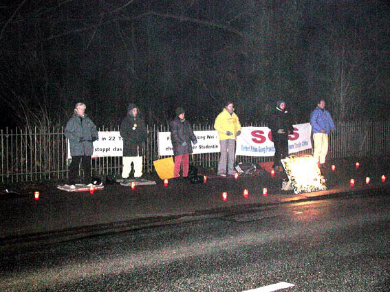 Vigile aux chandelles et envoi de pensées droites devant l'Ambassade de Chine à Hambourg