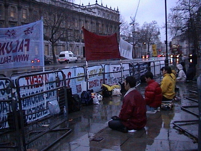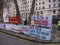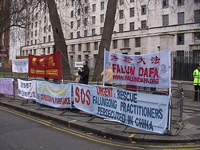 Des pratiquants font appel pacifiquement pendant la visite du Ministre Chinois des Affaires Étrangères en visite à Londres
