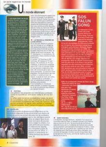 Le sous-titre de ce magazine est "Un autre regard sur le monde". Ses sujets principaux se concentrent sur ce qui concerne les religions, les méthodes de cultivation-pratique occidentales, les phénomènes surnaturels, etc. Les élèves de Falun Gong n'ont pas encore trouvé le temps de lui faire HongFa. Mais l'article qu'il a publié est à la fois simple et clair. En peu de phrases, il présente le Falun Gong, révèle la persécution cruelle du groupe Jiang Zemin et Luo Gan, et appelle les gens à aider les pratiquants de Falun Gong persécutés en Chine et à soutenir le Falun Gong. C'est vraiment comme un tract de HongFa. Par curiosité, des élèves ont contacté ce magazine afin de connaître la source de cet article.