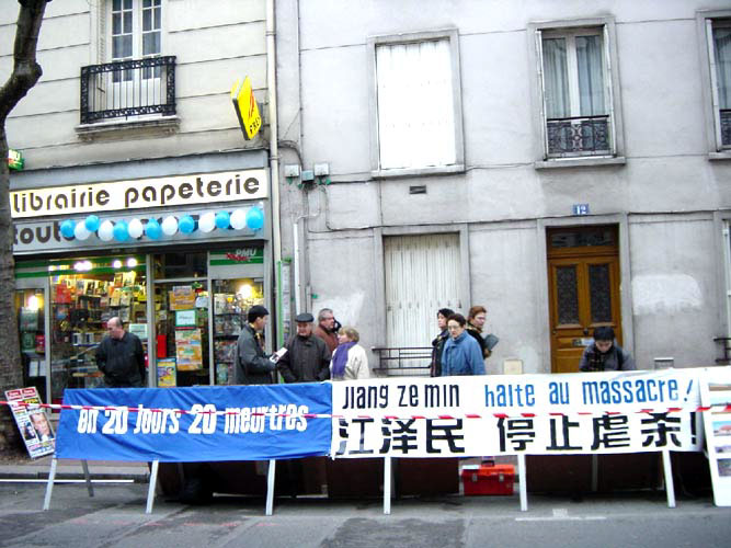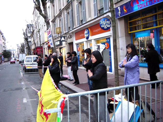 À Paris les pratiquants continuent leur protestation pacifique devant l'Ambassade et le Consulat de Chine contre les meurtres brutaux des pratiquants en Chine