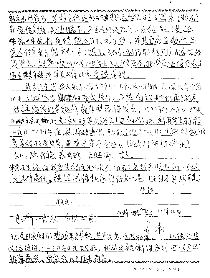 La lettre que Madame Jiang Wei à écrite