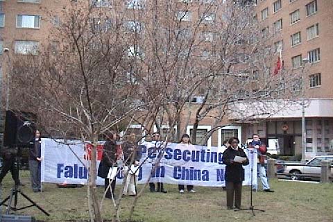Les pratiquants de Washington DC font une conférence de presse devant l'Ambassade de Chine pour secourir Connie Chipkar