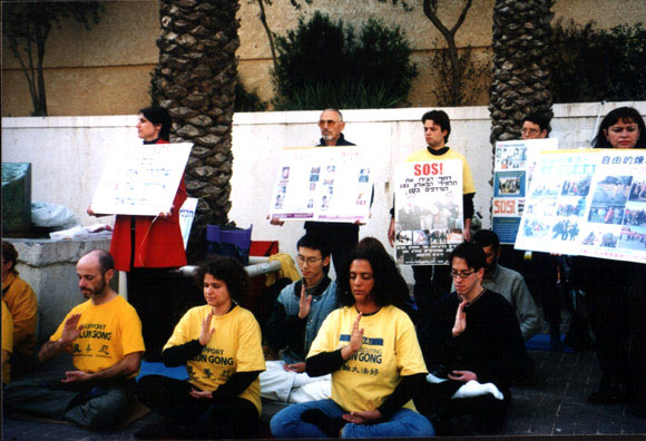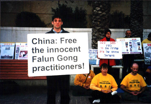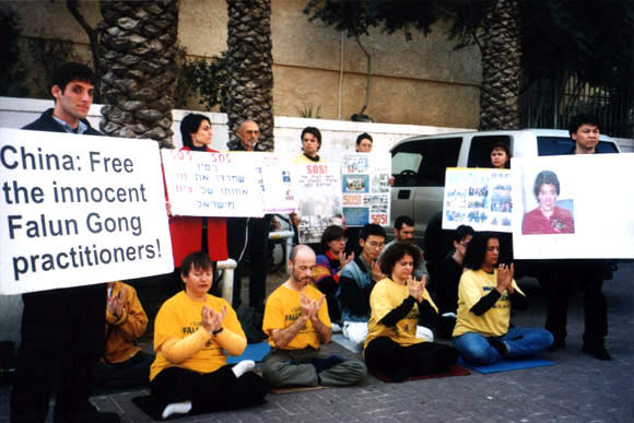 Les pratiquants israéliens font une conférence de presse devant l'Ambassade de Chine