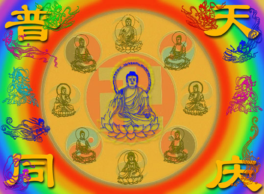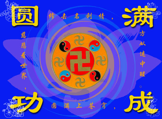 "Clarifiez la vérité intégralement, ayez la pensée droite pour éliminer la perversité, apportez le salut aux êtres, préservez résolument la Loi" (La Grande Loi est indestructible).