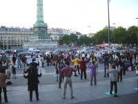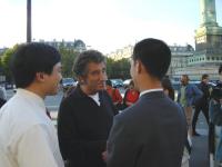 C’était une journée ensoleillée à Paris. Les rues étaient bondées de touristes du monde entier. Le soir, les pratiquants de Falun Gong se sont retrouvés sur la place de la Bastille où ils ont organisé des activités de SOS pour clarifier la vérité face à l’Opéra Bastille. Les panneaux de photos révélant la persécution brutale du régime de Jiang ont attiré beaucoup de passants. Les pratiquants distribuaient des brochures de Dafa au public. Le pratiquant d’Irlande Zhao Ming a fait part des tortures inhumaines qu’il a endurées pendant ses deux années de détention dans un camp de travaux forcés chinois.