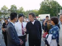 Juste après le début des activités, M. Jack Lang et sa femme se promenaient à pied dans le quartier et ont été attirés par l’exposition du Falun Gong. M. Jack Lang a été Ministre de la Culture, Ministre de l’Education et est professeur de droit. Il jouit d’une grande réputation au sein de la société française. Lorsqu’il était ministre de l’Education, il a fait beaucoup d’efforts pour libérer le pratiquant français et étudiant en doctorat Chi Jian et sa famille et le pratiquant irlandais en troisième cycle Zhao Ming.