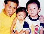 Yuhui Zhang avec sa fille et son fils à Macao en 1998. M. Zhang a été condamné à dix ans dans un prison chinoise pour avoir écrit des articles pro-Falun Gong. |