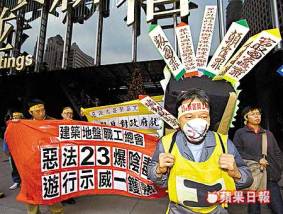 Apple Daily, le 14 décembre 2002, manchette des nouvelles : « La vicieuse loi de l’Article 23 détruit les droits des Unions des Travailleurs; Le Ciel et la Terre le condamne! » Plus de 40 personnes représentant 23 Unions des Travailleurs et 3 organisations de travail ont manifesté ce ``vendredi 13``, [13 décembre] pour protester contre la promulgation par le gouvernement de l’Article 23 de la Loi-cadre.