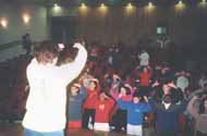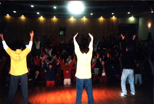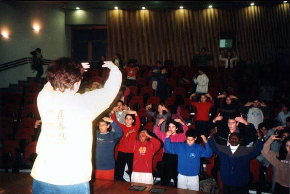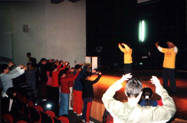 Les étudiants pratiuquent les exercices de Falun Dafa avec les professeurs.