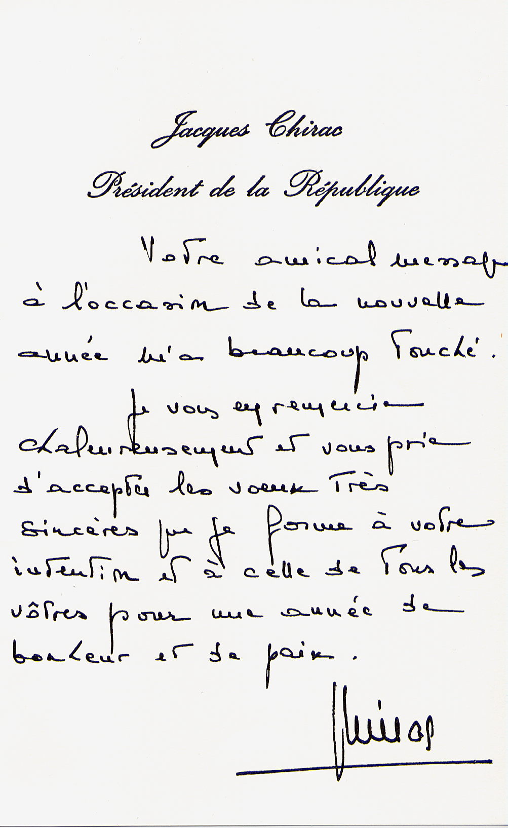 Le Président français souhaite une année de bonheur et de paix pour les élèves de Falun Gong