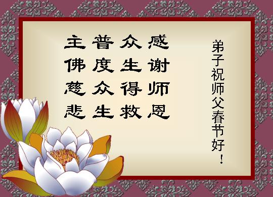 Les mots dans l'image sont : un poème et les voeux de Nouvel An des pratiquants au Maître.