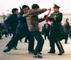 Le groupe des droits humains “Freedom House” situé à Washington a publié ce qui a leur avis sont des documents hautement secrets du gouvernement chinois détaillant l'écrasement des groupes religieux illégaux incluant l'Église clandestine Chrétienne et le Falun Gong. Les documents peuvent être vus sur le site : www.freedomhouse.org On voit la police chinoise arrêtant un pratiquant de Falun Gong sur la Place TianAnMen, à Pékin, le 1er janvier. Photo par Andrew Wong.