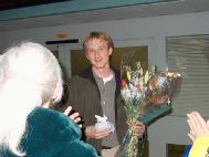 Lorsque Jason est apparut dans le hall de l'aéroport, les pratiquants de Toronto l'ont accueillit avec des applaudissements chaleureux. Plusieurs pratiquants ont déployés une grande photo de Jason lorsqu'il validait le Dafa au Square Tiananmen. Plusieurs ont offert des fleurs à Jason.