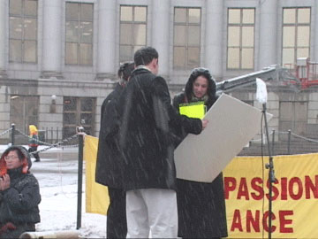 2002, bien qu'il neigeait beaucoup, les pratiquants du Falun Gong