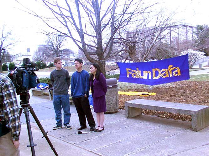 Les pratiquants de Caroline du Nord font une conférence de presse pour l'appel pacifique des pratiquants occidentaux au Square Tiananmen