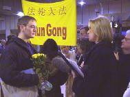 Bien que nous n’ayons pas réussi à faire notre protestation comme nous l’avions planifiée, nous avons l’intention d’utiliser cette opportunité pour faire prendre conscience de la persécution des pratiquants de Falun Gong chinois par leur propre gouvernement et le traitement épouvantable qu’ont subi les Occidentaux qui sont allés pacifiquement faire appel pour que leurs compagnons de pratique aient de nouveau le droit de pratiquer librement, sans crainte de la persécution et de la mort.