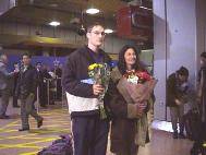 Nous sommes arrivés à l’aéroport de Heathrow et avons été les derniers à débarquer, car nous avions été placés tout au fond de l’appareil. Nous avons été accueillis par des pratiquants avec des fleurs et par la presse, avec la présence de Steve Mellor, reportages sur Heathrow (Reuters), Jane Warr et Caroline Alton pour la BBC (couvrant toutes les agences d’informations locales et internationales), David Parker pour The Daily Mail et Epoch Times. Il y avait trois équipes de tournage et un pratiquant de Falun Gong britannique filmant en direct l’interview qui a duré environ 45 minutes. D’autres interviews de télévision et de radio en direct ont été préparés en même temps.