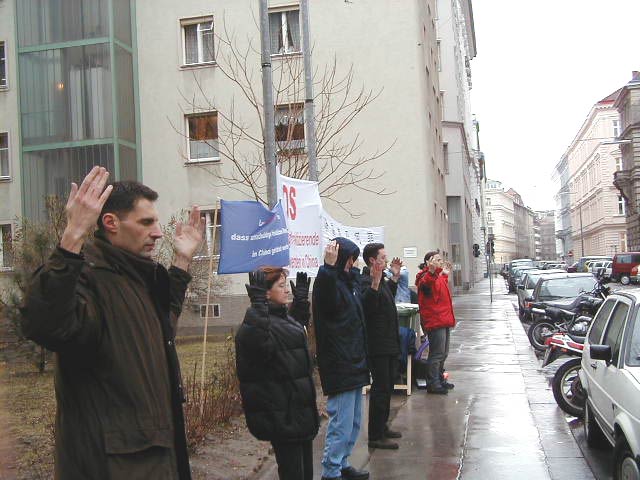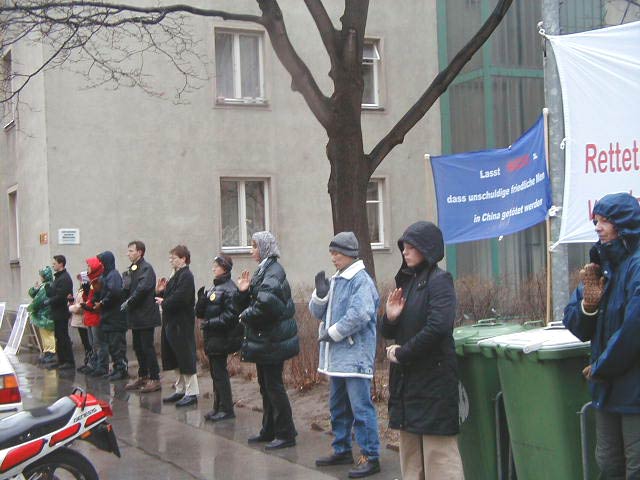 Les pratiquants Autrichiens protestent contre les expositions diffamatoires de l'Ambassade de Chine