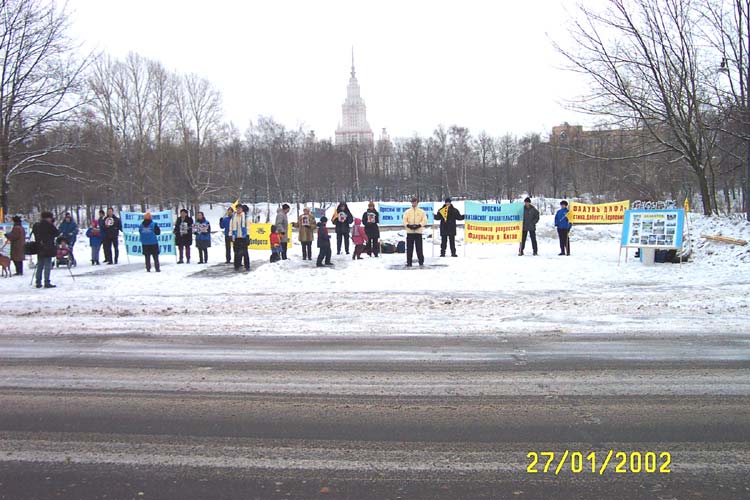 Les pratiquants russes protestent devant l'Ambassade de Chine pour que les meurtres des pratiquants de Falun Dafa en Chine cessent