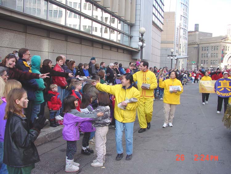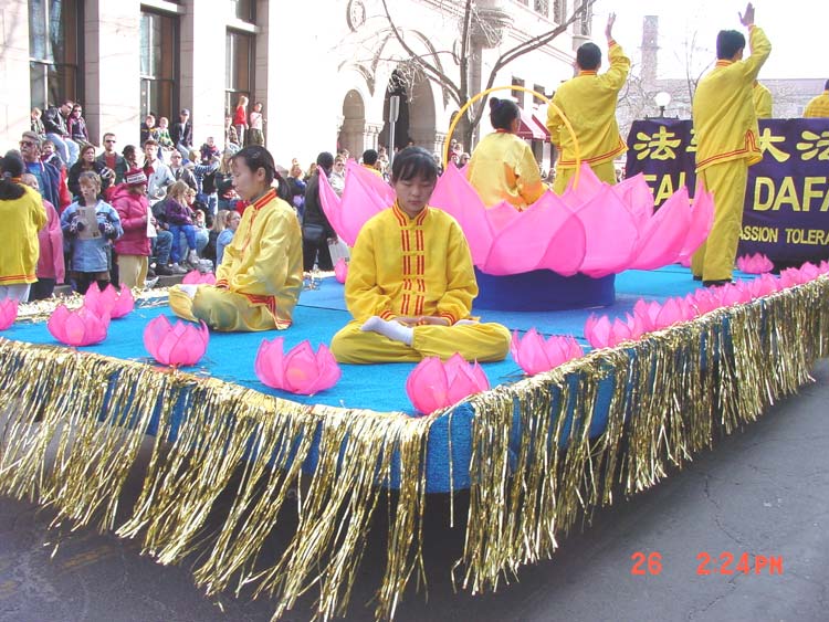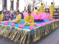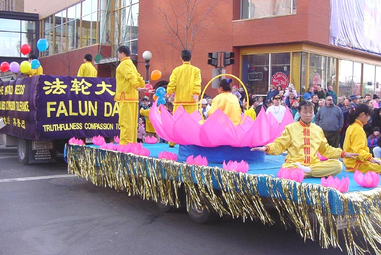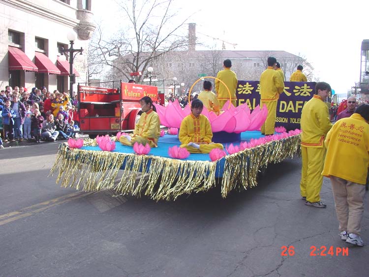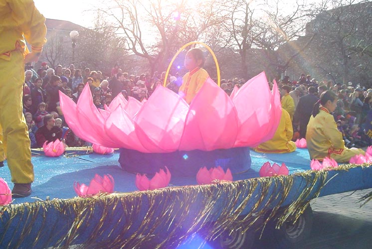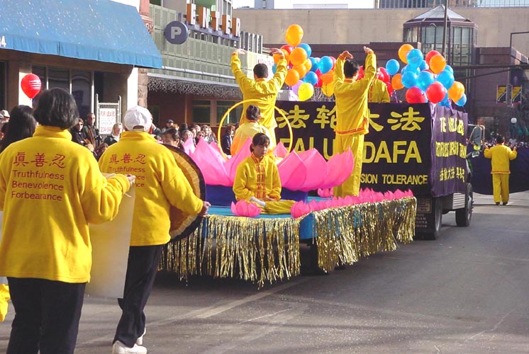 Comme un poème et une toile dans la profondeur de l'hivers : Le char du Falun Gong pendant la parade du carnaval de l'hivers à St-Paul