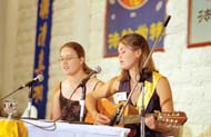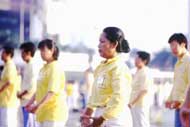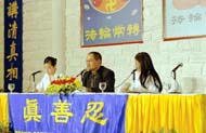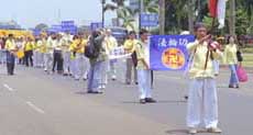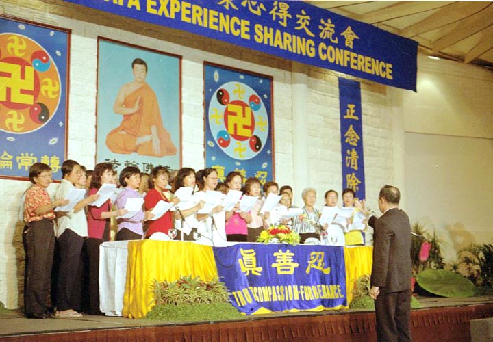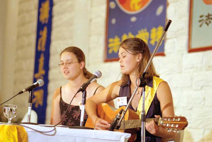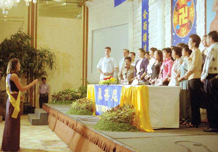 pratiquants d'outre-mer chantent "Falun Dafa Hao". |