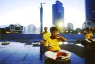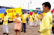 pratiquants de Singapoure chantent "Falun Dafa Hao". |