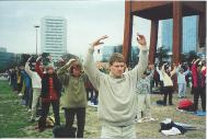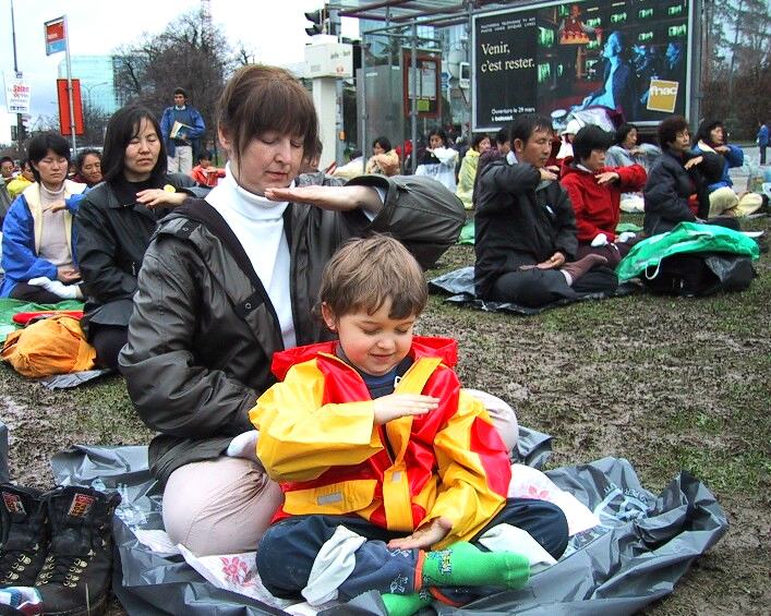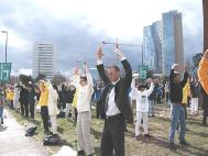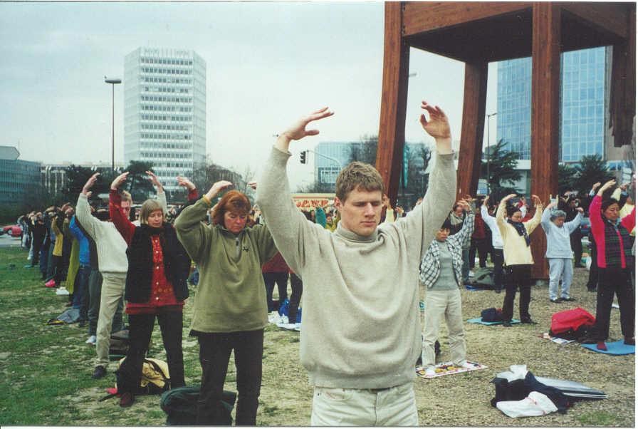 Les pratiquants du Falun Gong font un