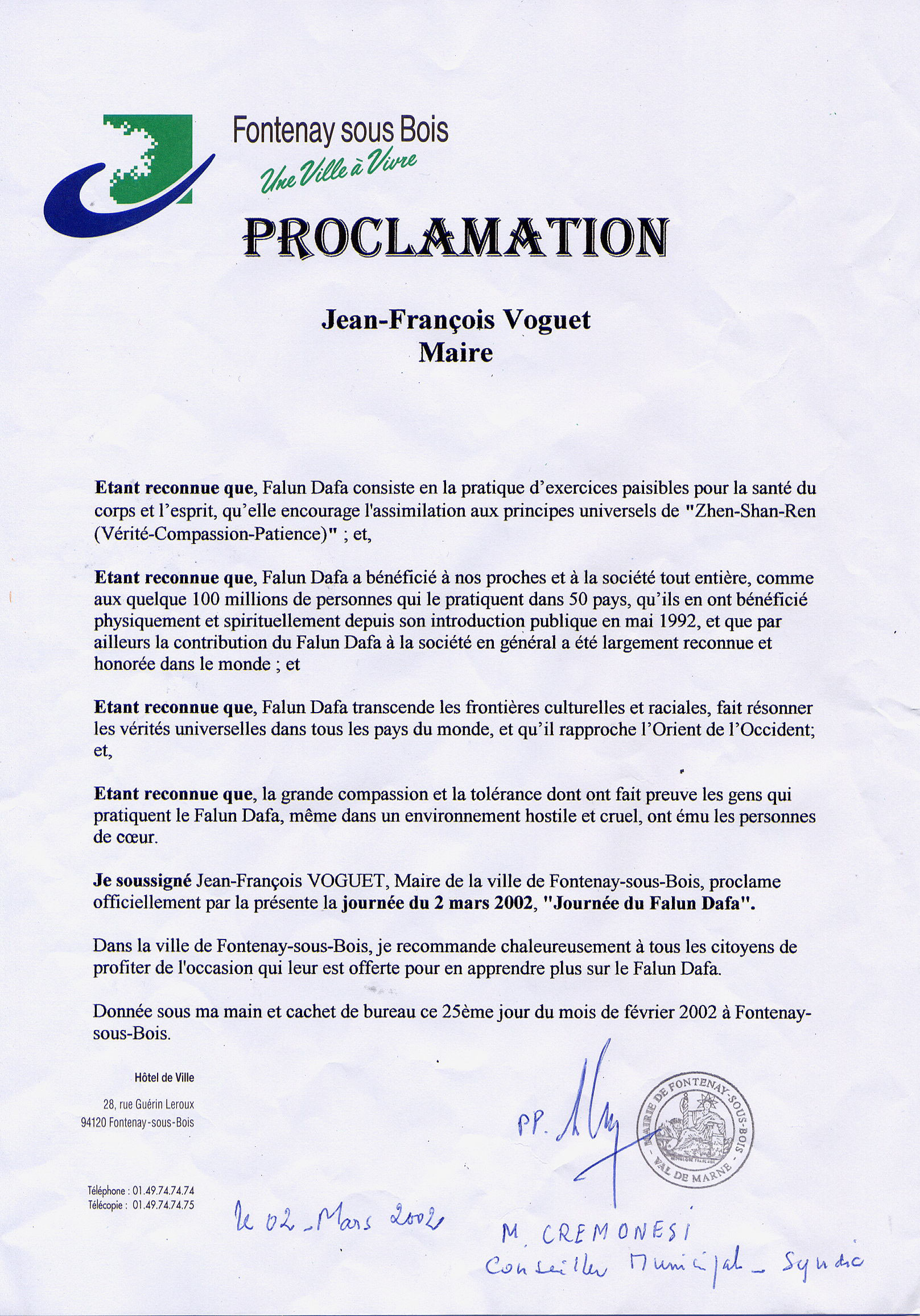- Journée mondiale du Falun Dafa (Site Internet en chinois)