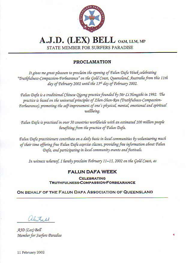 La Gold Coast, dans le Queensland, en Australie fait une "Semaine Falun Dafa pour célébrer Vérité-Compassion-Tolérance"