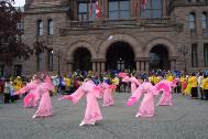 du Dafa de Toronto font une dance avec des foulard.