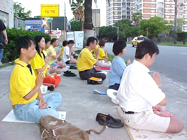 Tous les soirs, les pratiquants du Falun Dafa de Houston envoient des pensées droites avec force devant le Consulat Chinois pour éliminer la perversité (Photos)