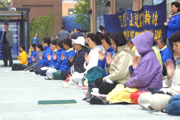 Le 15 juin 2002, les pratiquants de New-York ont envoyés des pensées droites avec force devant le Consulat Chinois, et ont protestés contre la persécution des pratiquants du Falun Gong par le régime de Jiang (Photos)