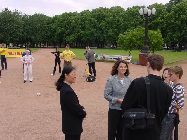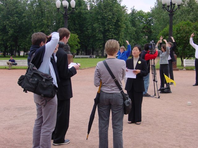 du Falun Gong ont fait une conférence de presse au parc de