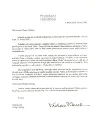 Lettre de Vaclav Havel, Président de la République Tchèque à Madame Zhang Cuiying [le 4 mai 2002]