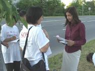Journalistes du poste de télévision interviewant Mme Zhang Li. Son époux, M. He Lizhi, un ingénieur senior doué qui s’est mérité des honneurs en génie structurel au niveau de son département ainsi qu’au niveau national, est un pratiquant du Falun Gong qui fut illégalement condamné à une peine de trois ans et demi de prison |