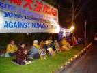 Afin de supporter les pratiquants de Falun Gong détenus à la prison de Jilin qui font une grève de la faim pour protester contre la persécution du pratiquant de Falun Gong, Liu Chengjun, torturé jusqu'au seuil de la mort à cause de son implication dans l’incident d’interférences de signaux de télé du 5 mars 2002, les pratiquants de la province de Victoria, en Australie, ont fait une conférence et une veillée aux chandelles en face du consulat chinois à Melbourne, pour protester fortement contre la cruelle torture du régime de Jiang envers les pratiquants de Falun Gong, et faire ainsi appel pour la libération immédiate des gens innocents.