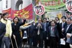 Leong Guoxiong “aux cheveux longs” proteste à haute voix la législation de l’Article 23 et distribue des dépliants et des papiers troués pour protester la soumission par le gouvernement du Brouillon du Statut de la Sécurité Nationale. Les gardes de sécurité l’ont emportés à l’extérieur.