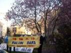 Le procès contre Jiang entre dans la phase où les dépositions légales sont présentées. Afin d’éliminer tout élément pervers dans les autres dimensions qui pourraient essayer d’interférer dans ce procès, les pratiquants de Washington DC sont allés en groupe à l’Ambassade chinoise pour faire la pratique de groupe. Le samedi, l’Ambassade chinoise fut hôtesse d’un banquet pour accueillir quelques invités. Les fonctionnaires qui entraient à l’Ambassade pouvaient tous voir les pratiquants faire les exercices. Les pratiquants ont déroulé une banderole avec l’inscription « Le Falun Dafa est bon », face à l’Ambassade.