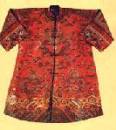 A gauche: un robe de satin rouge brodée pour femmes : Dynastie Qing Au