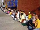 Le mercredi soir, après qu’une tempête ait soufflé sur la ville, le ciel est redevenu clair et lumineux. Sur le trottoir devant le consulat environ 60 pratiquants étaient assis et formaient deux rangs bien ordonnés pour étudier la Loi, pratiquer le cinquième exercice et émettre des pensées droites. Ils semblaient paisibles et sereins. Une jeune pratiquante distribuait gentiment des brochures à tous les automobilistes quand le feu passait au rouge. Son comportement attentionné ressemblait à celui d’un maître qui donne toute son attention à ses élèves.