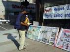 Un couple qui passait a semblé très affecté en voyant les photos de la persécution dont souffrent les pratiquants en Chine. La dame a voulu donner de l’argent aux pratiquants pour exprimer sa compassion et son soutien. Les pratiquants ont dit au couple que nous n’acceptons pas les dons. Ils sont partis, mais un peu plus tard, ils sont repassés et ont pris un pratiquant par la main. Les larmes aux yeux, ils ont demandé, « qu’est ce qu’on peut faire pour vous aider ? On va prier pour vous. »