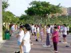 La statue de lion avec une queue de poisson sur les rives de Singapour est une célèbre attraction touristique. Des centaines de touristes viennent chaque jour de différents pays du monde pour la voir. Parmi eux il y a beaucoup de chinois. A mesure que les pratiquants de Dafa sont plus clairs sur l'importance de la cultivation dans la rectification de la loi et sur la manière de clarifier la vérité exposée dans les leçons de Maître, nous avons changé nos heures de pratique, qui étaient irrégulières et spontanées. Nous avons recommencé à pratiquer les exercices à heures régulières. Tous les jours nous pratiquions les exercices, clarifions la vérité et aidions Maître à sauver les êtres, quelles que soient les conditions climatiques. Les pratiquants de Dafa apportent spontanément des posters en anglais, en chinois et dans beaucoup d'autres langues. Nous avons patiemment informé les touristes que le Falun Dafa est la Loi juste et nous avons lavé les torts causés dans leur esprit par les mensonges. Beaucoup de touristes ont découvert la vérité ici et ont établi une base pour un futur radieux.